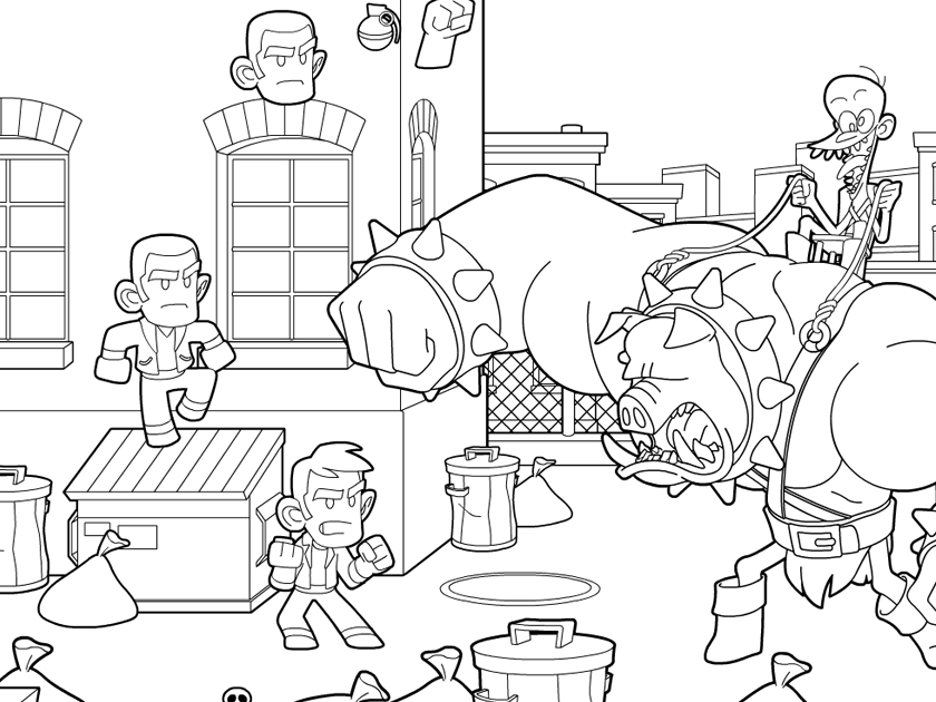 Super Action Bros. is a video game concept (side-scroller / beat 'em up) I created for fun.The game didn't actually been made. I only drew a fake gameplay screenshot to get an idea of what a game might look like with my art style.
